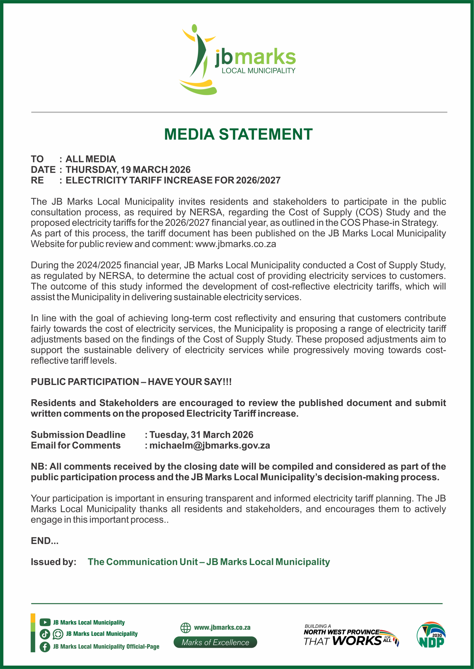 Mission“To provide affordable and sustainable services to our community through accountable and responsive administration”
